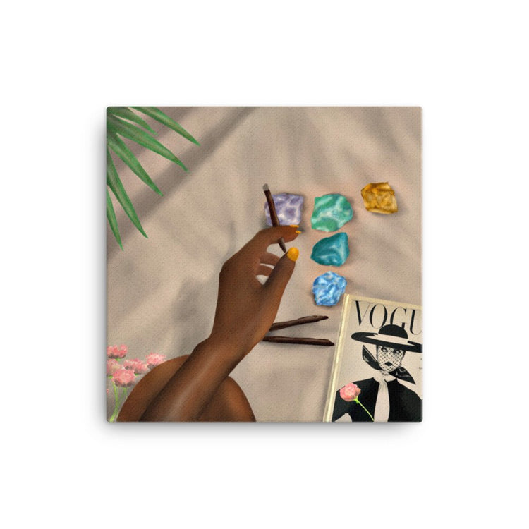 Energy Essentials Canvas captures a peaceful moment of self-care and spiritual balance. Surrounded by healing crystals and calm, this artwork invites you to protect your energy and choose stillness amid chaos. It’s a reminder to realign your spirit and keep your peace without explanation.
